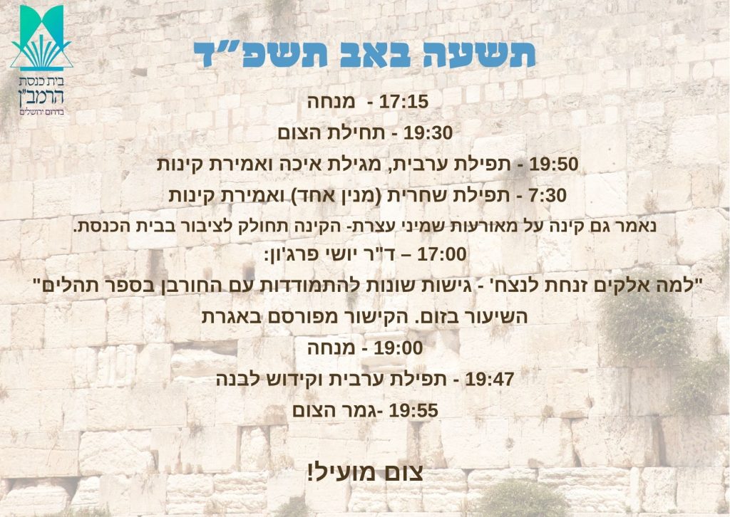 דמי חבר והזמנת מקומות ישיבה לימים נוראים תשפ"ה ההרשמה להזמנת מקומות ישיבה לראש השנה ויום כיפור תסתיים ביום רביעי ט"ו אלול (18/9/2024). ההזמנות, שיתקבלו לאחר מכן, ייענו על בסיס מקומות פנויים בלבד. מי שטרם נרשם מתבקש להירשם בהקדם. עדכון לגבי תשלום דמי חבר תשפ"ה ניתן לשלם את דמי החבר לשנת תשפ"ה. מי שמשלם באמצעות כרטיס […]