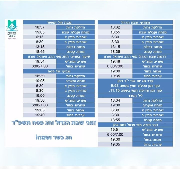 זמני שבת הגדול וחג הפסח